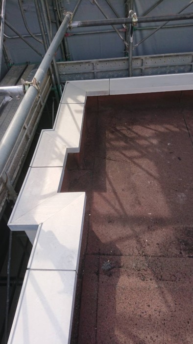 本日は取り付けではなく、既設建物の屋上防水工事のため、アルミ笠木を一時撤去する作業をしてきました。